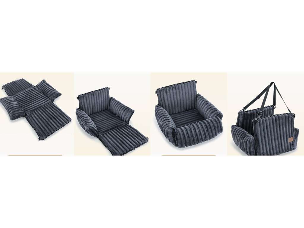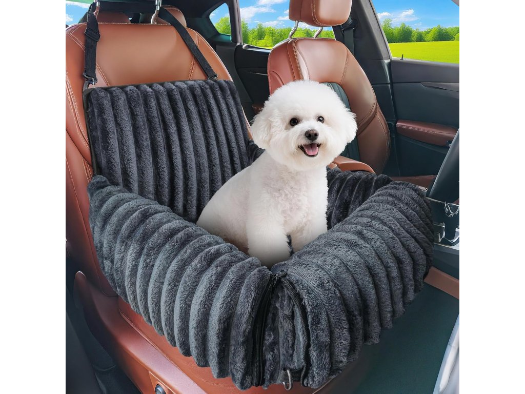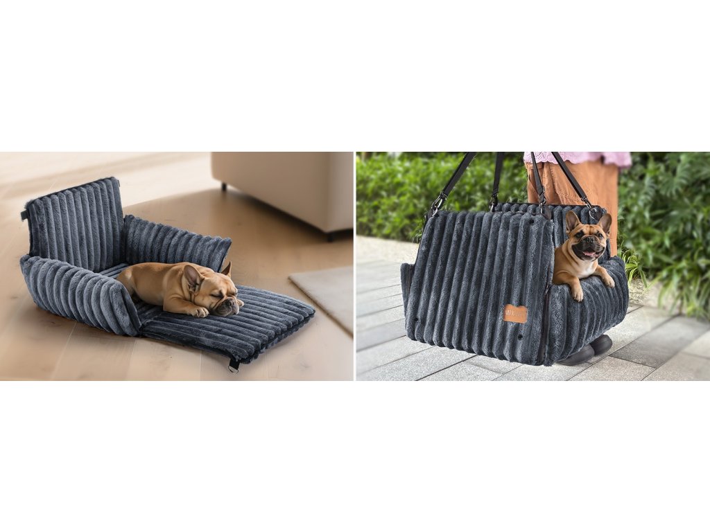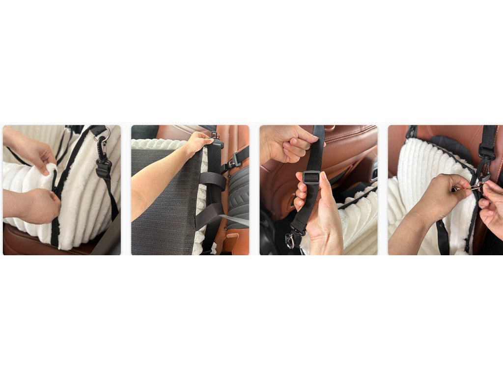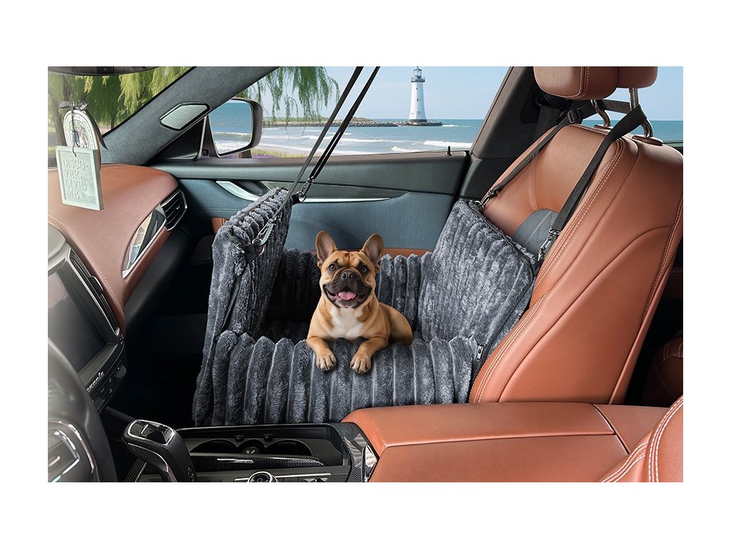 Zabudovaný nastavitelný bezpečnostní pás s kovovou karabinou lze připevnit na psí postroj, aby byl stabilní, aby se zabránilo tomu, že se dostane dopředu nebo vyskočí z okna