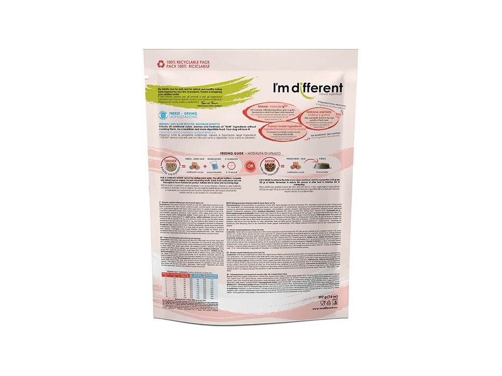 Varianta kompletní krmivo: Stačí přidat vodu a počkat 5-10 minut. Vytvoříte tak čerstvé krmivo, velmi blízké přirozenému stavu, lahodné a plné chuti. Pro změnu konzistence můžete přidat více nebo méně vody v závislosti na preferencích vašeho psa. Doporučené dávkování v tabulce - viz obal.