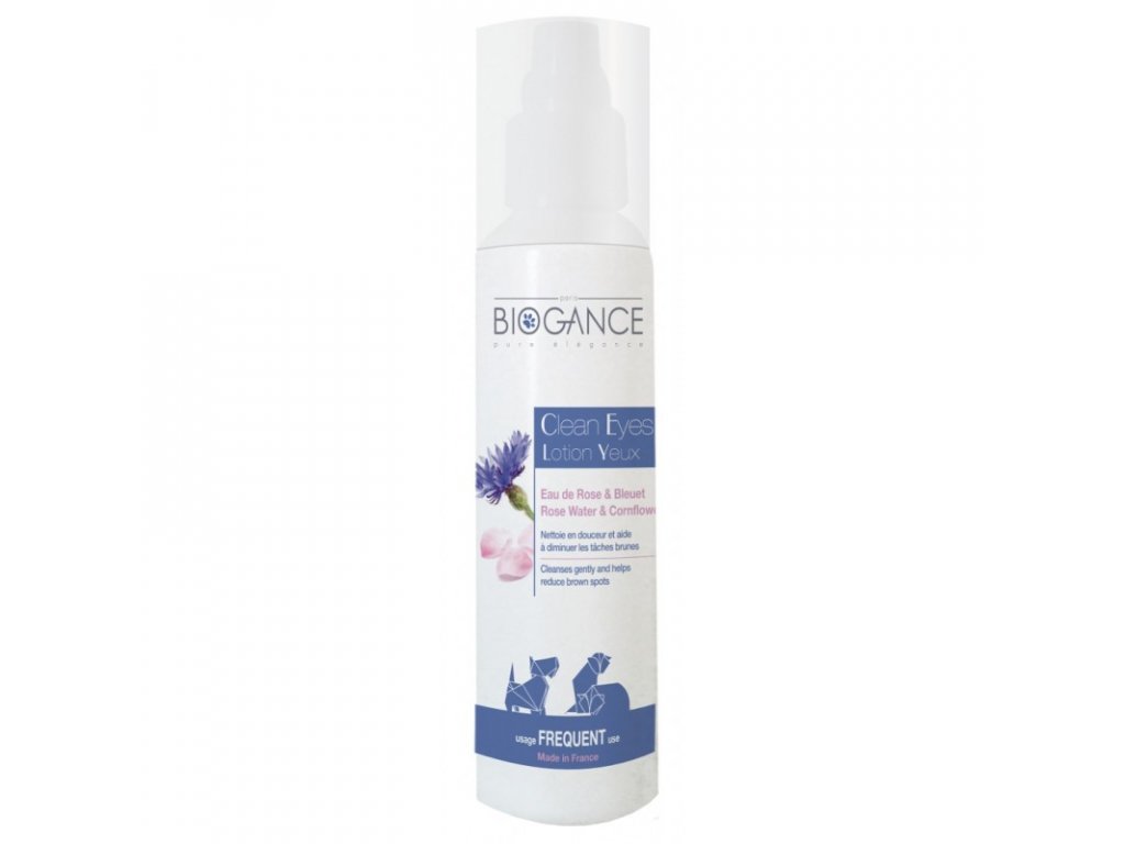 Čistič očí obsahuje bioaktivní látky, vodu z lupínků růží a chrpy. Použití: Naneste na kousek bavlněného tampónu a jemně očistěte okolí očí a chlupů.Aplikujte dvakrát týdně. BIOGANCE® je první francouzská řada kosmetických výrobků pro domácí zvířata, která se inspirovala přímo z naší přírody. Produkty jsou vyráběny bez použití parabenů, fenoxyethanolu a živočišných olejů.Výrobky BIOGANCE® NEJSOU testovány na zvířatech.