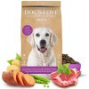 DOG'S LOVE granule Adult JEHNĚČÍ se sladkými bramborami a mátou - přírodní, celostní a přirozeně hypoalergenní suché krmivo pro dospělé psy s 50% obsahem jehněčího, sladkými bramborami, zeleninou a ovocem, obohacené o vitamíny a stopové prvky, za studena lisované oleje a další zdraví prospěšné přísady. Bezobilné kompletní krmivo speciálně vytvořené pro potřeby dospělých psů vyrobené s čerstvým masem.