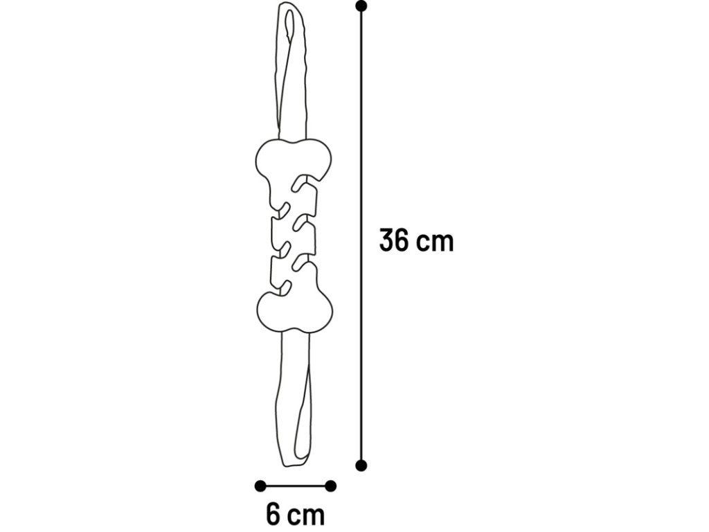Hračka pro psy ve tvaru kosti je vyrobená z termoplastické gumy (TPR) s bambusovým vláknem. Při kousání masíruje dásně a pomáhá omezovat tvorbu zubního plaku, čímž přispívá k přirozené péči o chrup. Úchyty na obou koncích hračky slouží k interaktivní hře a přetahování. Prohlubně v hračce lze naplnit pamlsky nebo jedlou pastou a zvýšit tak motivaci ke hře.