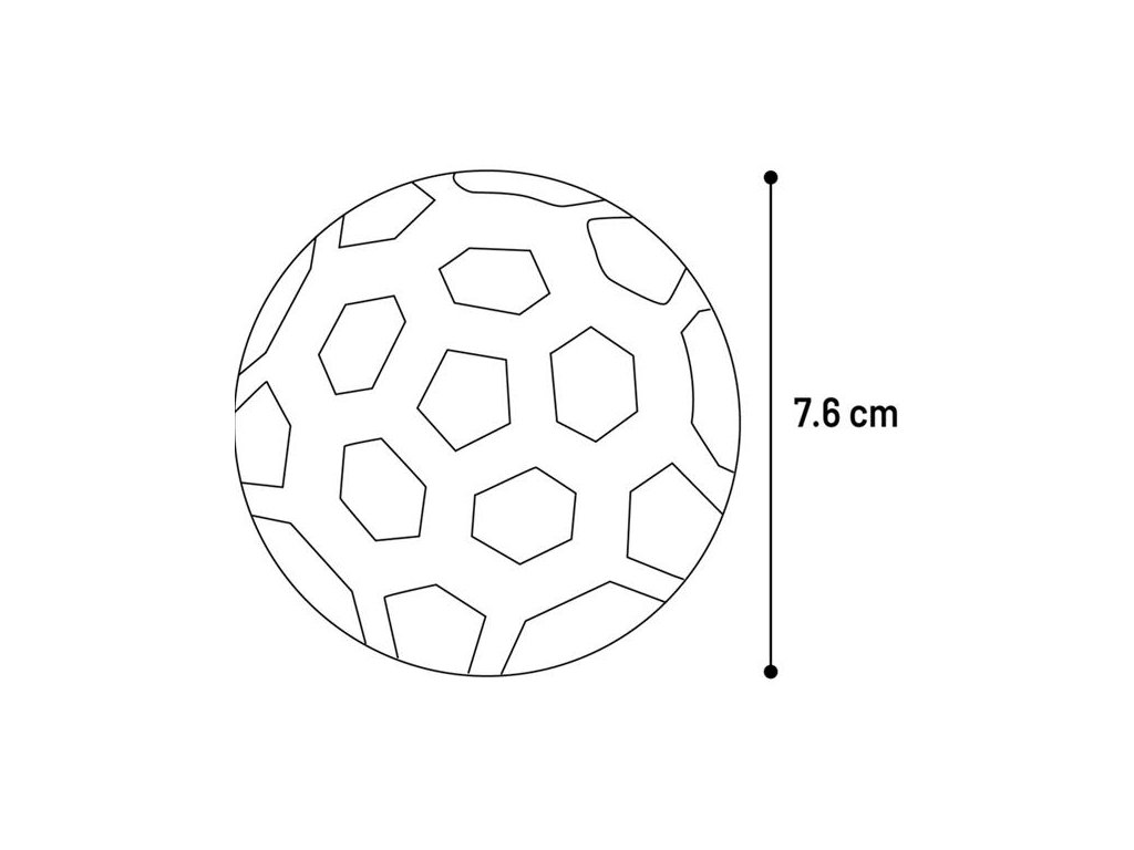 Hračka pro psy ve tvaru míče je vyrobená z termoplastické gumy (TPR) s bambusovým vláknem. Při kousání masíruje dásně a pomáhá omezovat tvorbu zubního plaku, čímž přispívá k přirozené péči o chrup. Pro větší vzrušení ze hry je uvnitř hračky další, menší míček. Díky děrované konstrukci je míč vhodný i pro psy se ztíženým dýcháním (brachycefalická plemena apod.).