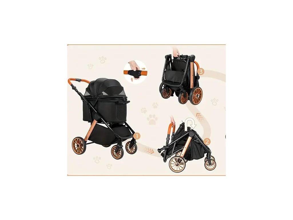 Skládací čtyřkolový kočárek pro psy a kočky One-Touch s taškou na kočárek .