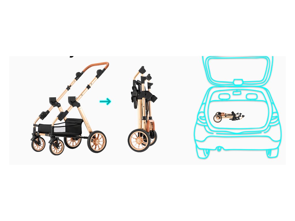 Kočárek lze složit a velikost po složení činí pouze: 81 × 64 × 24 cm, což se velmi dobře hodí k uložení v autě, zabírá málo místa a je velmi praktická na cesty, skladování nebo skladování.