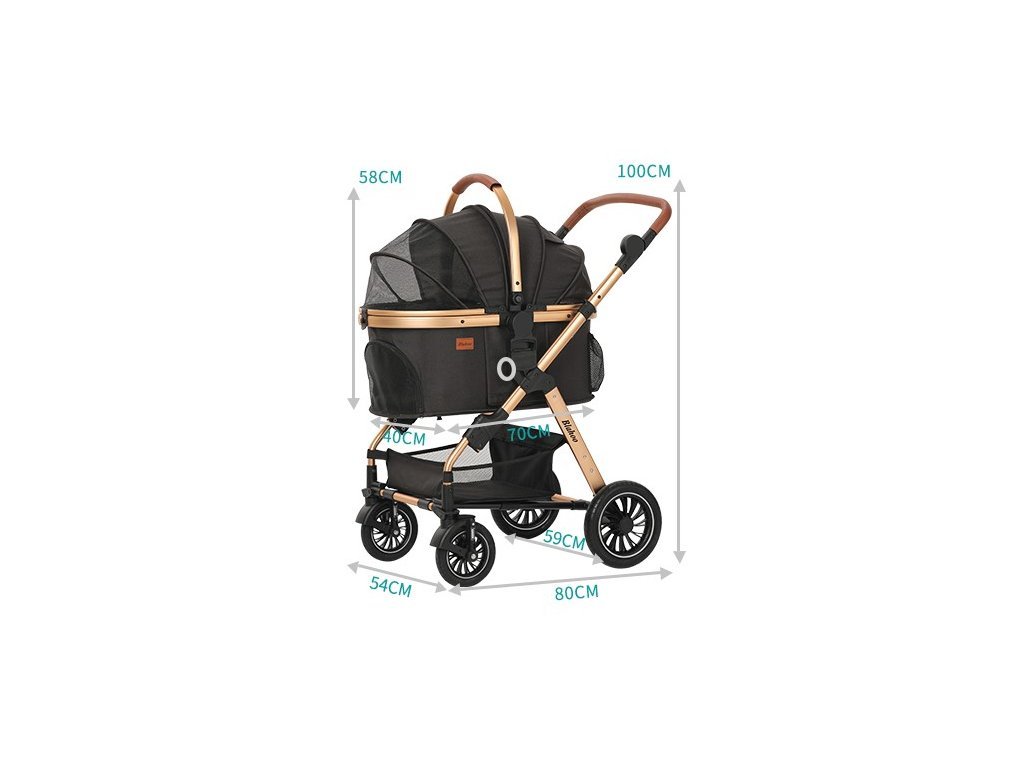Konstrukce kočárku pro psy je z vysoce kvalitního, odolného a stabilního ocelového rámu, který umožňuje malá zvířata až cca 20 kg. Váha kočárku 8,16 kg