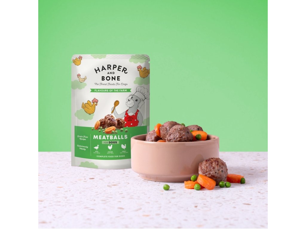 Harper and Bone Dog příchutě farmy masové kuličky jsou bohaté na bílkoviny a omega 3 a 6 mastné kyseliny. Jsou nejen chutné, ale také vysoce výživné.