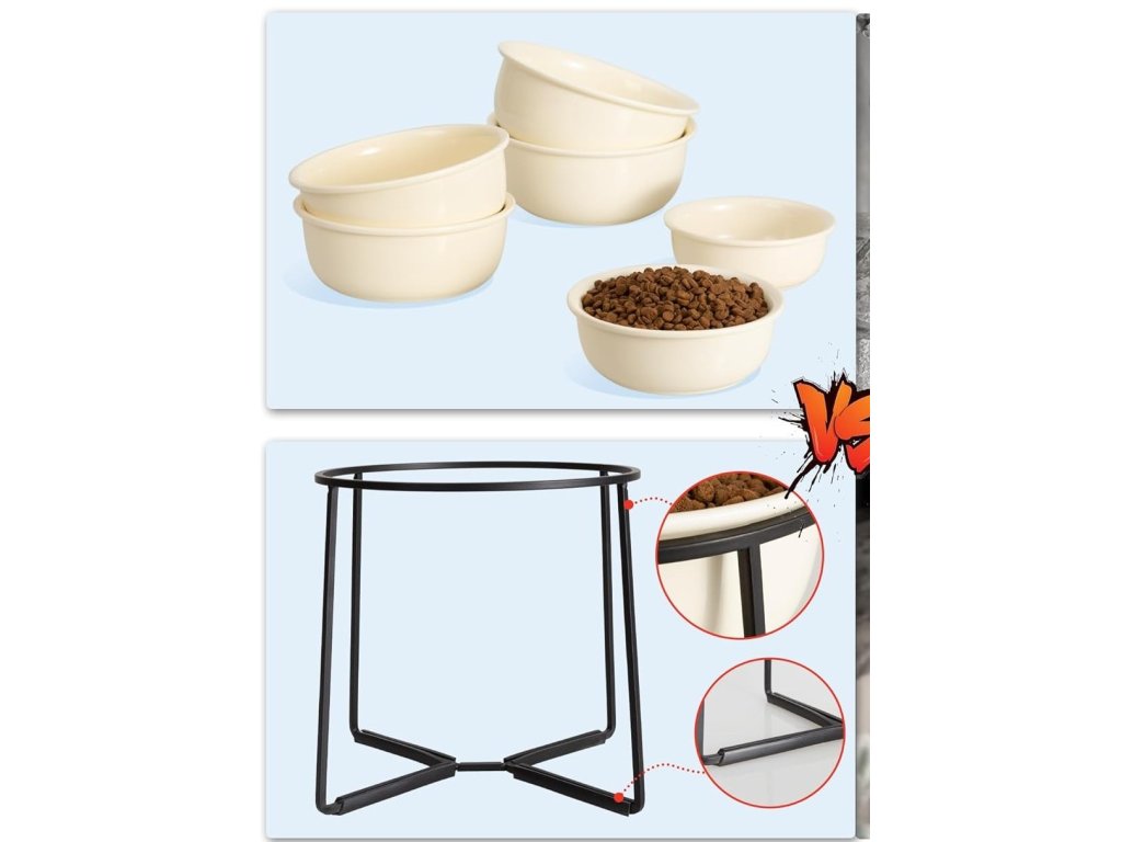 - Snadné čištění a údržba – odnímatelný design usnadňuje čištění. Keramické misky pro psy lze po svátku vašeho domácího mazlíčka jednoduše vložit do myčky. Kovový stojan lze rychle otřít suchým hadříkem a okamžitě vypadá jako nová.
