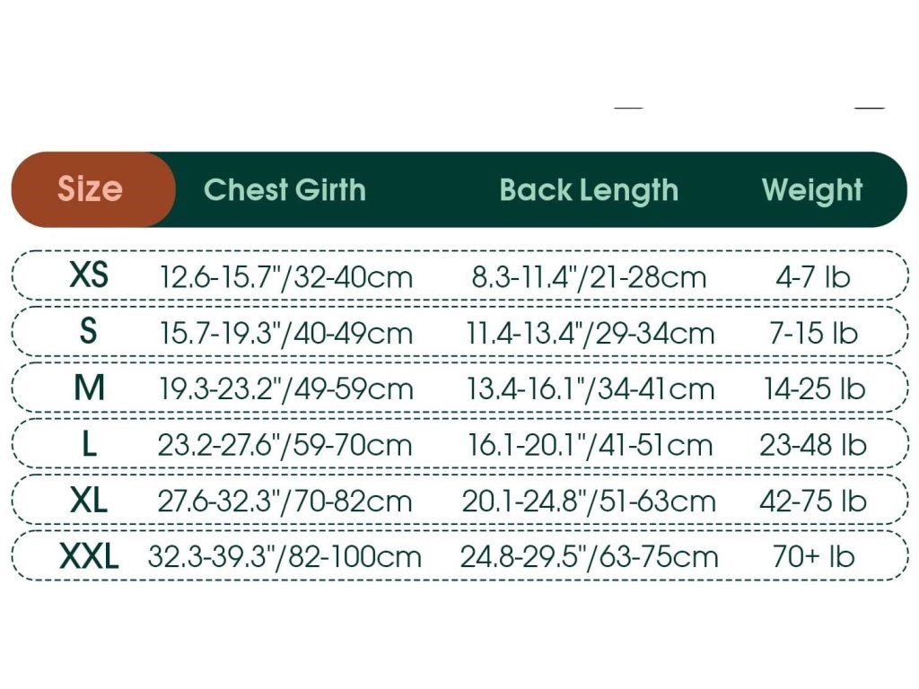 K dostání ve velikostech XS, S, M, L XL, 2XL pro malé, středně velké a velké psy/kočky