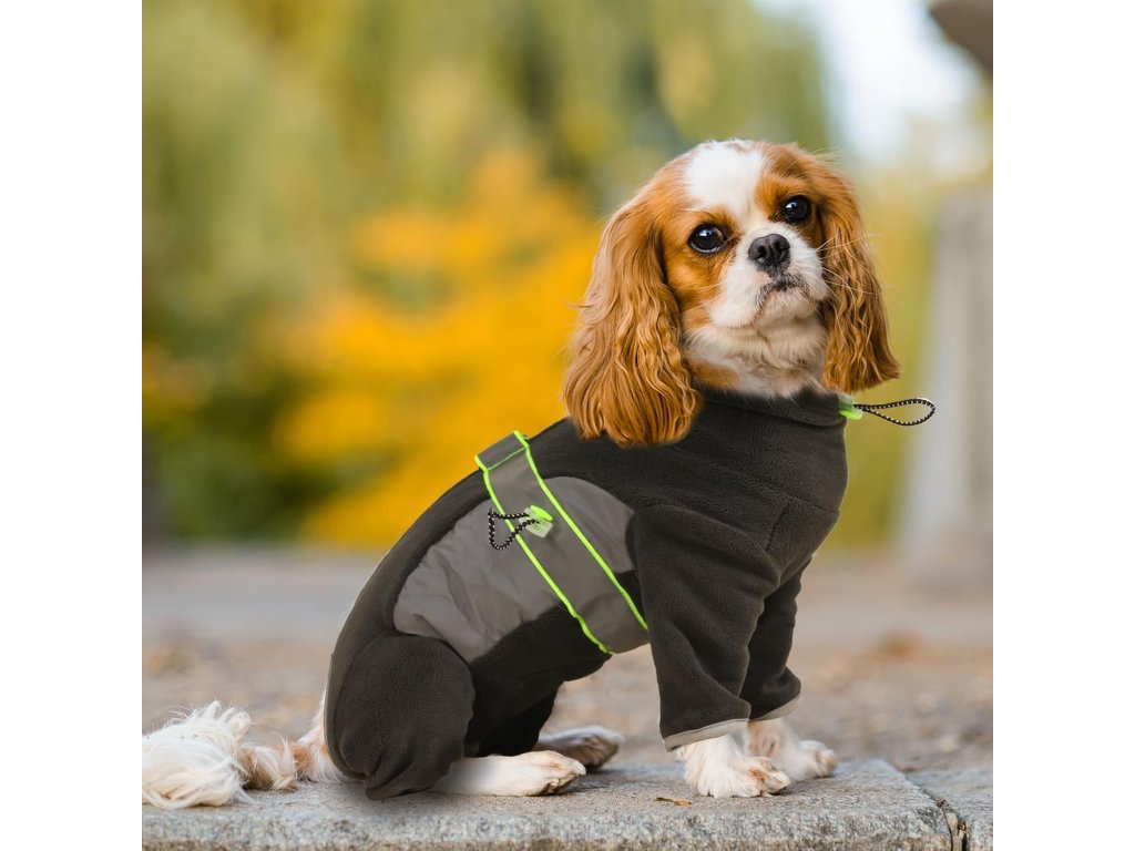 • Teplá kombineza má vysoký límec a 2 stahovací šňůrky umožňují nastavit fleecový kabátek na krk a obvod hrudníku psů, aby lépe padl a byl teplejší. Vhodné na podzim a zimu.