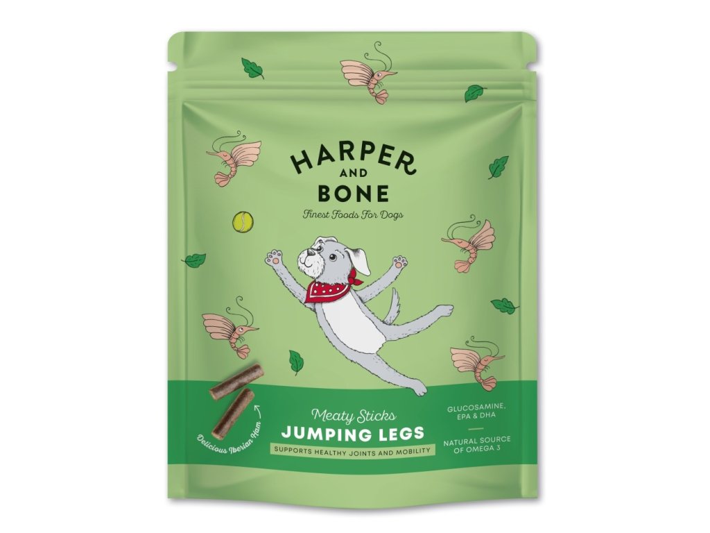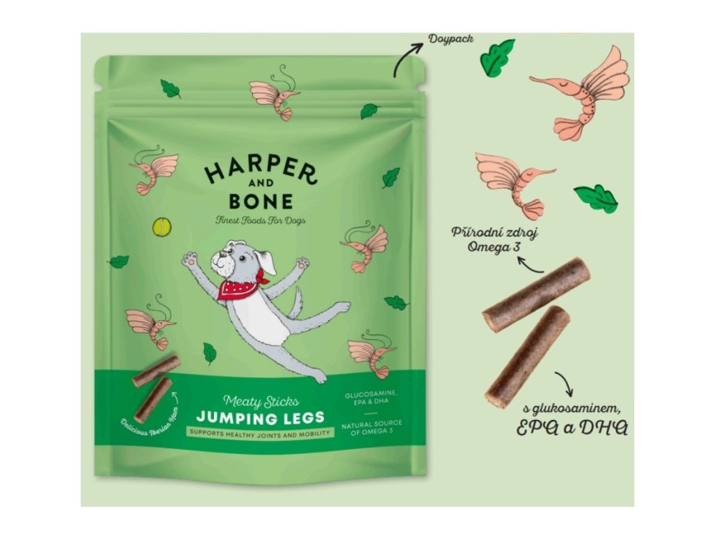 Harper and Bone Meaty sticks Jumping legs lahodný pamlsek nejenže chutná skvěle, ale také poskytuje důležité výhody pro klouby a pohyblivost tvého psa, aby byl stále šťastný a aktivní.