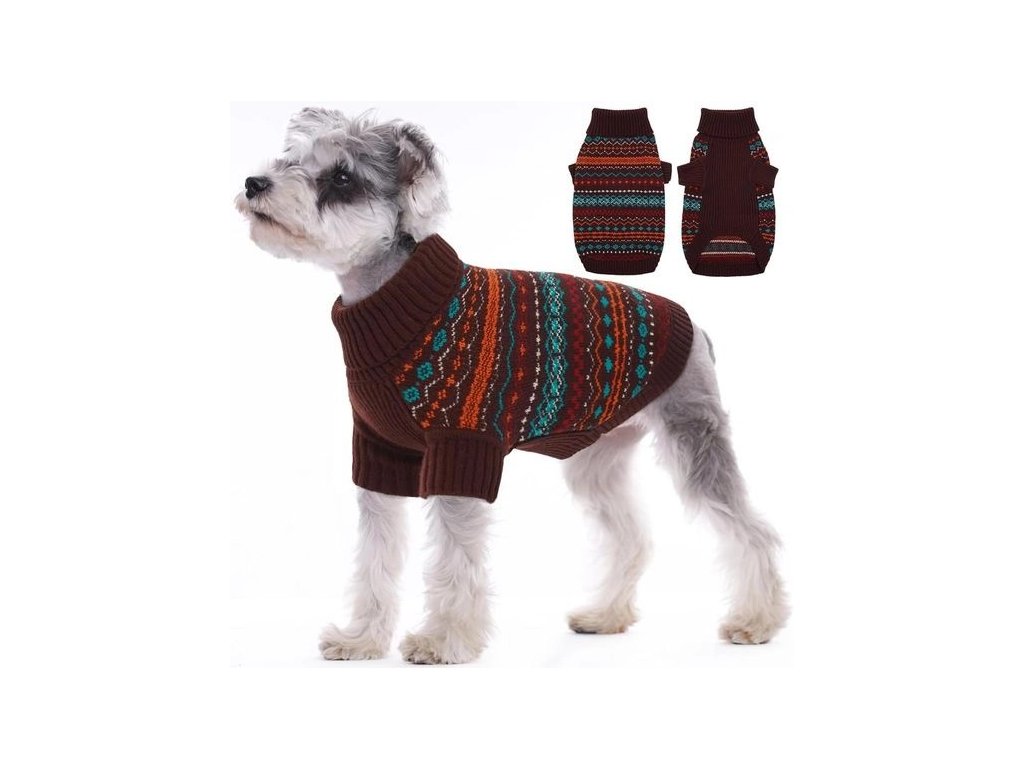 Pulovrový vzor je slavnostní a pro vašeho psa je krásným zimním oblečením.