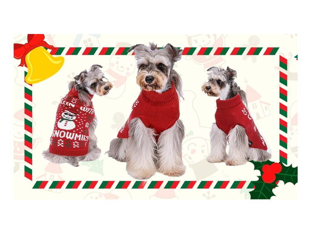 Pulovrový vzor je slavnostní a pro vašeho psa je krásným zimním oblečením.