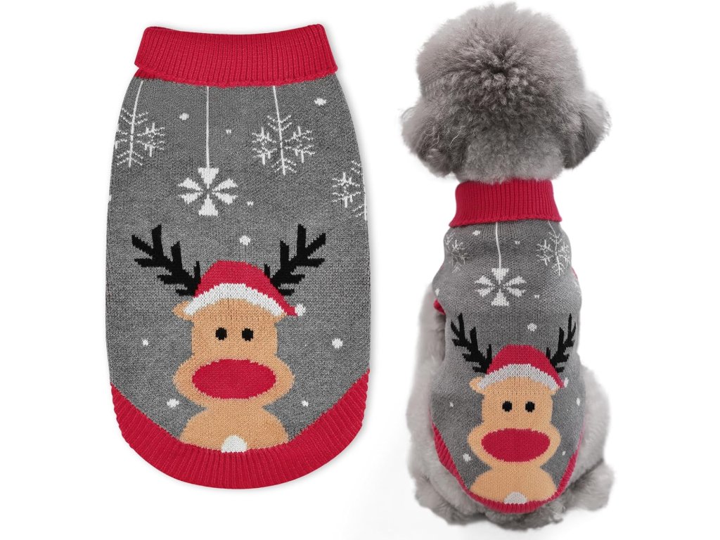 Pulovrový vzor je slavnostní a pro vašeho psa je krásným zimním oblečením.