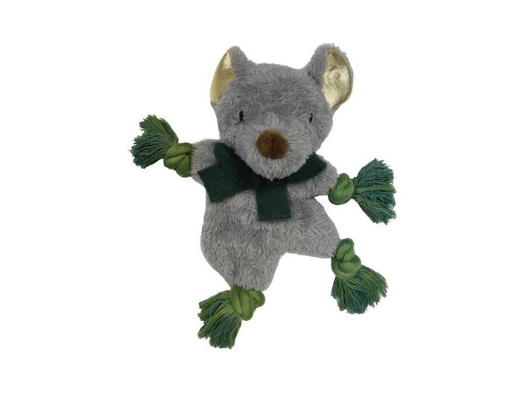 Vánoční hračka pro psy je vyrobena z měkkého plyše a má zabudované pískátko. Kroucená lanka místo končetin jsou ideální k přetahování.